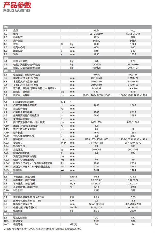 1.0/1.2噸電動堆高車 (兩級寬腿)